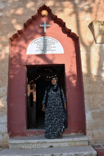 Mardin’in Derik ilçesi Kale Mahallesi’nde yaşayan, 8 çocuk annesi Hatun Çaçur, (80) 1650 yılında, 1500 metrekarelik alanda inşa edilen Surp Kevork Ermeni Kilisesi’ne gönüllü olarak bakıyor.
