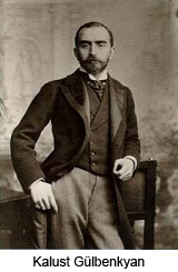 Petrolcü, Hayırsever Kalust Sarkis Gülbenkyan; Uluslararası petrol sanayinin doğmasında ve gelişmesinde önemli rol oynamış ve bu arada uluslararası siyasi ilişkilerde de etkili olmuş ailesi Kayserinin Talas Kazasından İstanbul’a göçmüş olan Ermeni asıllı Osmanlı Devleti vatandaşı bir işadamıdır. Osmanlı İmparatorluğu’nun petrol kaynaklarını ve özellikle de Mezopotamya’daki petrol rezervlerini ele alan bir raporu padişah II. Abdülhamit ‘e sunulmak üzere hazırlamıştır. 1898’de Paris ve Londra’daki Osmanlı elçiliklerine mali müşavir tayin edilmesiyle Gülbenkyan bir yandan da bir Osmanlı memuru sıfatı edinmiştir. Osmanlı Bankasına da Mali Danışmanlık Yapmıştır. Irak Petrol Yataklarını İşletmek İçin Kurulan Şirkette %5 petrol hisseleri sahibi olduğu için uluslararası iş çevrelerinde “Bay Yüzde Beş” (Mr. Five Percent) olarak anılmıştır. Kendi Adına Kurduğu Lizbon’daki Vakfında Çok Zengin Bir Sanat Koleksiyonu Mevcuttur.