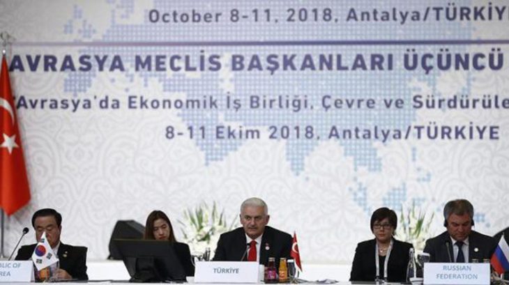 TBMM ev sahipliğinde, Antalya’nın Belek Turizm Bölgesi’nde bulunan Kaya Palazzo Otel’de devam eden Avrasya Meclis Başkanları Üçüncü Toplantısı’nda, ortak bildirinin okunması sırasında gerginlik yaşandı. Ermenistan’ın toplantıdaki temsilcisi Meclis Başkan Yardımcısı Eduard Sharmazznov’un basına kapalı oturumda 1915 olayları (Ermeni Soykırımı-‘Akunq’ web sayfası yöneticileri) ve Dağlık Karabağ bölgesine yönelik açıklamalarda bulunduğu öğrenildi. Ardından basına açık yapılan toplantıda ortak bildirinin okunması sırasında TBMM Başkanı Binali Yıldırım, Ermenistan temsilcisi Sharmazzov’u sert sözlerle eleştirdi.