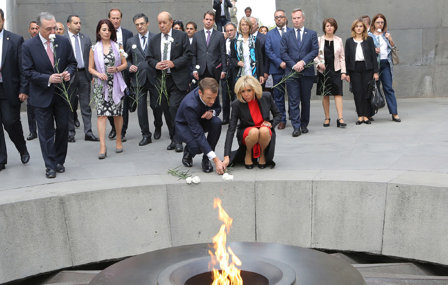 Fransa Cumhurbaşkanı Emmanuel Macron ve eşi Brigitte Yerevan’a gelir gelmez, Dzidzernagapert Soykırım Anıt Kompleksini ziyaret edip, Soykırım’da hayatını kaybeden Ermeniler için anıta çelenk bıraktı. Macron ayrıca Fransa’nın 24 Nisan’ı Ermeni Soykırımı ulusal anma günü ilan edeceğini ziyaretin hemen ardından açıkladı.
