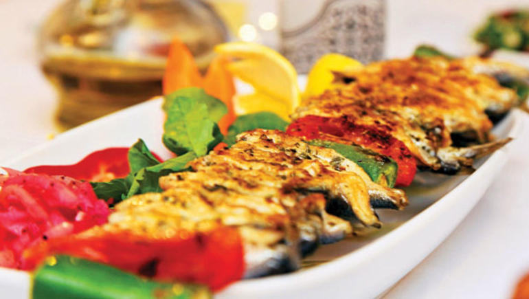 Hamsinin kılçığını alıp şişe takmışlar. Rokayla sunuluyor. Hamsiler yağlı değil, ama pişirme tam kıvamında.