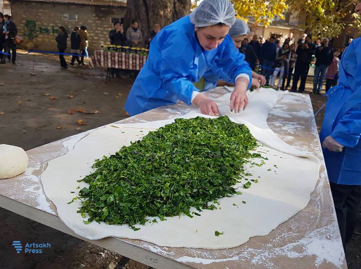 Artsakh’ta (Karabağ) 3 metre uzunluğu ve 20 kg 885 gram ağırlığı olan Jengyalov hats (içinde 26 çeşit yeşillik olan bir börek çeşidi, “Yeşillik ekmeği”) hazırladılar.
