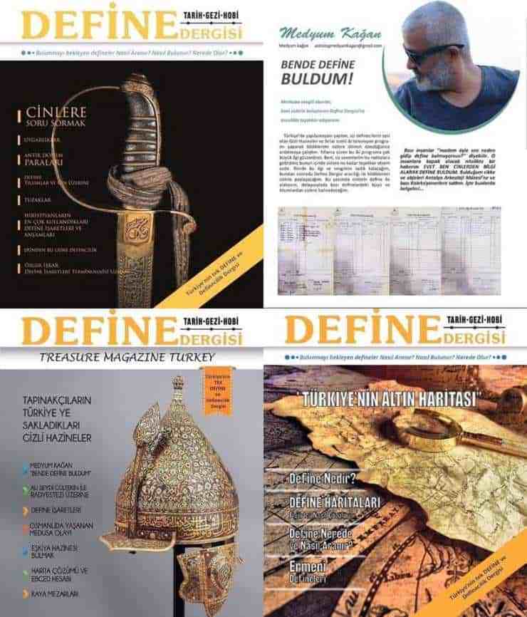 Hürriyet’ten Salim Uzun’un haberine göre defineciler daha geniş bir kitleye ulaşmak için dergi çıkarmaya başladı. ‘Define’ adlı dergide, Türkiye’de bulunan gizli hazineler, cinlere soru sormak, define çubuğunun hareketleri, tuzaklar, bulunmayı bekleyen defineler nasıl aranır, nasıl bulunur, nerede olur başlıklarıyla ‘makaleler’ yer alıyor.