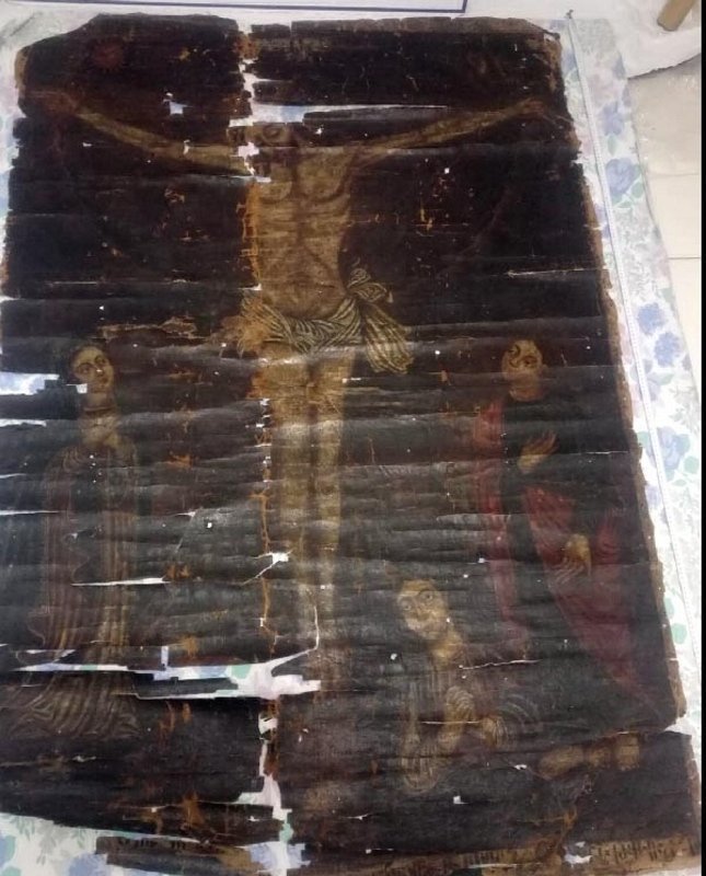 Kayseri’de, 13. yüzyıla ait olduğu değerlendirilen, Hazreti İsa’nın çarmıha gerilişi ve onu üzüntü ile izleyen 1 kadın ve 2 erkeğin bulunduğu tablo elde geçirildi.