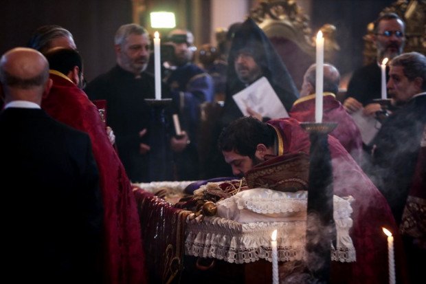 Ayini Kudüs Patriği Başepiskopos Nurhan Manukyan takdis ederken Episkopos Arşag Haçaduryan sundu. Çıkış kortejini ise Başepiskopos Sebuh Çulciyan yönetti. Cenaze törenine Ermeni toplumundan geniş katılım oldu. Tüm kurumlar, vakıf yöneticileri ve halk törende yer alırken Hükümet ve siyasi parti temsilcileri de cenazede hazır bulundular.
