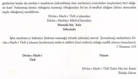 Vahakn N. Dadrian, Taner Akçam, “Tehcir ve Taktil Divan-ı Harb-i Örfî Zabıtları-İttihad ve Terakki’nin Yargılanması 1919-1922”, İstanbul, 2008, s. 589-597.