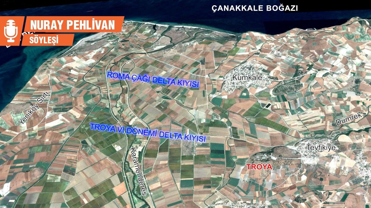 Troya eteklerinde ve sırtı çevreleyen alüvyal ovada yaptığımız, 327 delgi sondajdan sağlanan sedimantolojik bilgilerle Troya çevresinin fiziki coğrafyasında meydana gelen değişmeler incelenip, paleocoğrafya haritaları çizildi. Buna göre, son buzul çağını izleyen dönemde yükselen deniz, önce Karamenderes Vadisi’ne 15 km kadar sokularak günümüzden 7-6 bin yıl öncesinde, 3-5 km genişlikte bir körfez meydana getirdi. Bundan sonraki süreçte deniz seviyesinin yükselmesinin durmasıyla bu körfez, Karamenderes Irmağı’nın alüvyonları ile dolmuş, kuzeye ilerleyen delta kıyısı zaman içinde bugünkü konumuna, Çanakkale Boğazı’na ulaşmıştır.
