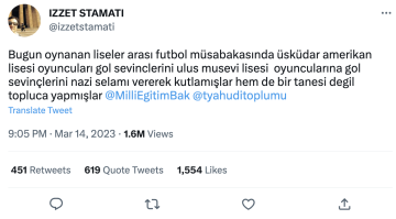 Konuyu gündeme getiren İzzet Stamati, haberi Twitter’dan duyurdu. Stamati, attığı tweet’te 14 Mart günü liseler arası oynanan futbol maçında Üsküdar Amerikan Lisesi (ÜAL) futbol takımı oyuncularının Ulus Özel Musevi Lisesi (UÖML) oyuncularına karşı gol sevinçlerini topluca Nazi selamı vererek yaptığını duyurdu ve “Bugün oynanan liseler arası futbol müsabakasında Üsküdar Amerikan Lisesi oyuncuları Ulus Musevi Lisesi oyuncularına gol sevinçlerini Nazi selamı vererek kutlamışlar. Hem de bir tanesi değil topluca yapmışlar” dedi.