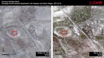 “Caucasus Heritage Watch” web sitesinde yayınlanan uzay görüntülerinde açıkça görülebileceği gibi, Azerbaycan, Haykajur köyündeki (eski adıyla Gâvurkala) Ermeni eski Hıristiyan yerleşim yerinde bulunan kabristanın arazisinde sığınaklar kazdı.