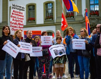 Yüzlerce kişi Cumartesi öğleden sonra İsviçre’nin başkenti Berne’nin, Katedral Meydanı’nda “Azerbaycan’ın Dağlık Karabağ’daki saldırganlığına” son verilmesi talebiyle toplandı. Göstericilerin İsviçre Konfederasyonun Dağlık Karabağ Ermenilerinin korunması konusunda daha cesur kararlar almasını ve harekete geçmesini talep ettiler.