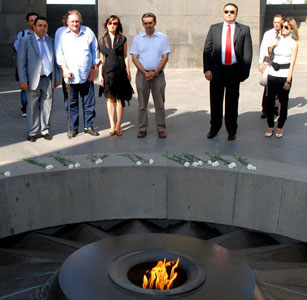 Erivan’da bulunan Fransız sinemasının ünlü oyuncusu Gerard Depardieu Ermeni Soykırımı anısına inşa edilen Tsitsernakaberd Anıtı’nı ziyaret etti. Bugün ünlü oyuncu Ermenistan Parlamentosu’nda gazetecilerle biraraya gelecek.