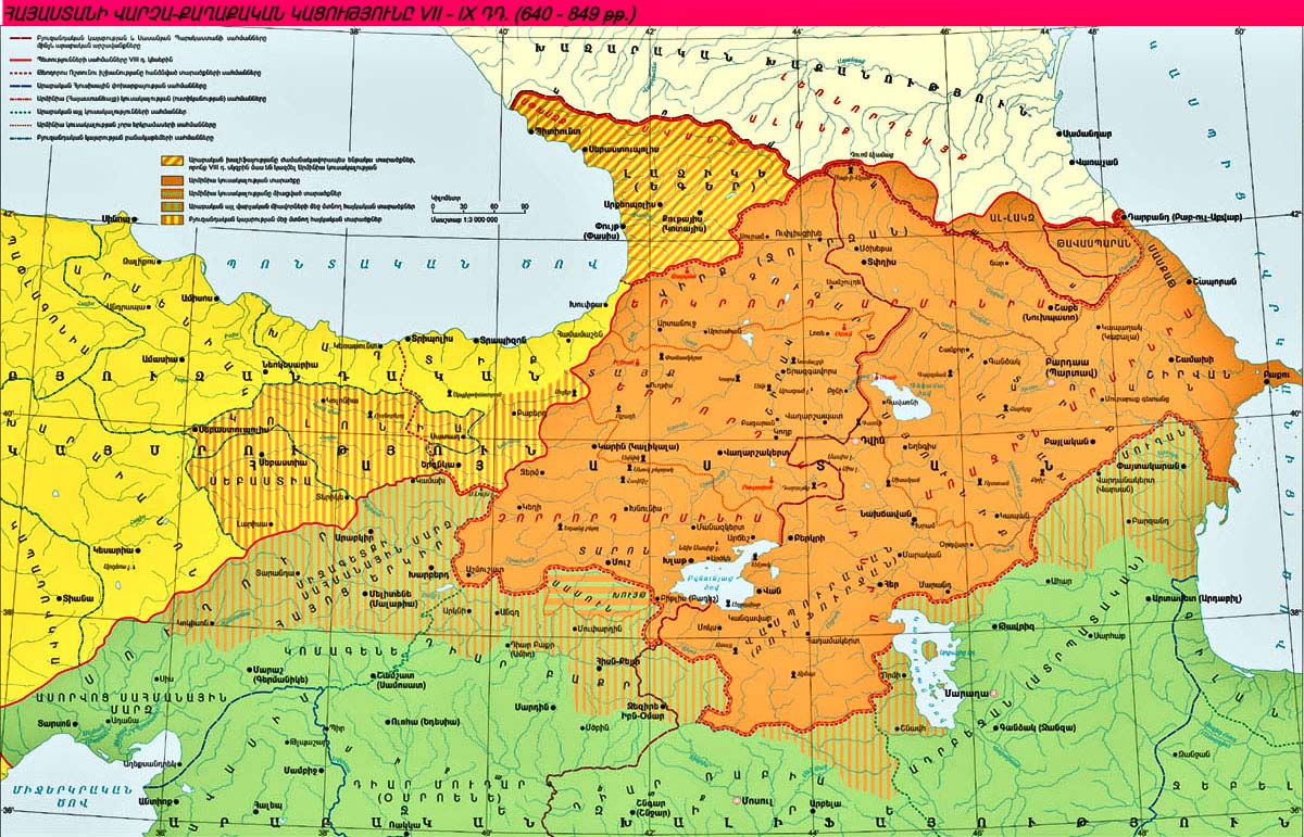 Vardan (kızıl) Mamikonyan önderliğinde 572 yılında Pers egemenliğine karşı yürütülen ayaklanma, 20 yıllık Bizans-Pers savaşına yol açmış ve bunun sonucunda Ermenistan 591 yılında yeniden bölünerek ülkenin büyük bir kısmı (Azat Nehri’ne ve Sevan Gölü ile Hrazdan arasında kalan bölgeye kadar) Bizans’a kalmıştır. Arap saldırıları ve Arap-Bizans savaşları esnasında Büyük Hayk’ın esas bölümü, Ayrarat, Sünik, Artsakh, Vaspurakan, Mok, Turuberan, Tayk ile Gugark, Ağdznik ve Korçayk’ın bazı bölgeleri tekrar Ermeni beyleri yönetimi altında birleşerek, ülke bir nevi beylik cumhuriyetine dönüşmüştür. Ermeni yöneticiler, beyler tarafından seçildikten sonra imparatorun veya halifenin tasdiğini almaktaydılar. Ermeni beyleri, ülkenin en büyük hükümdarları olarak, iç ve dış siyasetle ilgili geniş yetkilerle donatılmışlardı. Arap Halifeliği’nin gitgide zayıflaması sonucunda Ermenistan’ın bağımsızlığını kazanması (885) yolunda imkânlar yaratılmıştı. Ermeni Bagratuni Krallığı, Büyük Hayk’ın büyük bölümünü (Hükümdarları tarafından Bagratuniler’in üstünlüğününün tanındığı Vaspurakan Krallığı, Taron Beyliği, Artsakh Beylik Devleti, Kars veya Vanand, Kürikyan ve Sünik krallıkları, Tayk Kürapalatlığı) kapsamaktaydı.