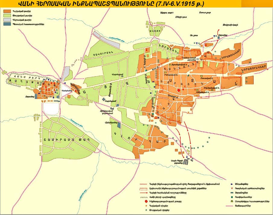 Genç Türk vandalları, şeytanca planlarını her yerde ve her zaman işleme geçirmeye muvaffak olamamışlardır. Batı Ermenistan ve Osmanlı İmparatorluğu’nun Ermenilerle meskûn birçok yerinde Ermeni halkı, başka kurtuluş yolunun olmadığını anlayarak silah elde kendini savunmuştur. Van, Şatakh, Hayots Dzor, Arçeş (Erciş), Timar, Sasun (Sason), Muş, Musa Dağ, Şebin Karahisar ve Urfa destanları Ermeni halkının tarih sayfalarında sonsuza kadar kalacaklardır.