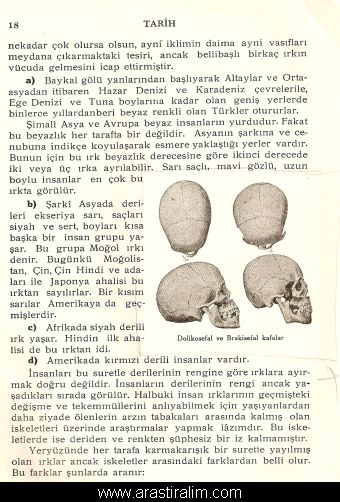 Bu iddianın doğru tarafları da var; yanlış tarafları da. 1931 yılında Devlet Matbaasında 30.000 adet bastırılan ve 1950 yılına kadar liselerimizde okutulan 4 ciltlik tarih kitabının ilk cildinin sonunda, bir insan ve bir goril iskeletinin resimleri yan yana duruyor. O tarih kitabının 5. sayfasında, insanlarla maymunların müşterek bir soydan geldikleri yazılı. Tarih kitabının 15. sahifesinden itibaren ırk konusu işlenmektedir. 5. ve 6. resimlerde Brakisefal ve Dolikosefal kafatasları gösterilmektedir.