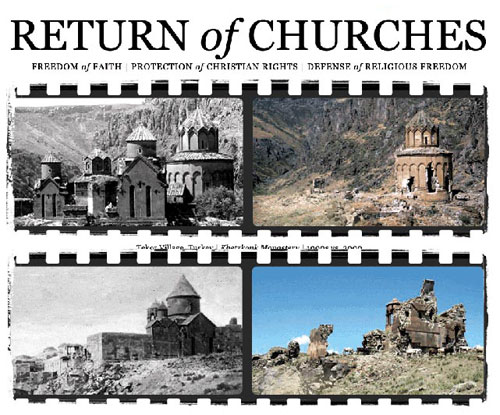 -Tüm Hristiyan kiliselerinin ve ibadethane, manastır, okul, hastane, anıt ve kutsal alan ile sanat eserleri, el yazmalar, dini eserler gibi taşınabilir mallar da dahil olmak üzere tüm diğer dini mülklerin gerçek sahiplerine iade edilmesi,