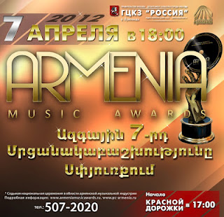 Birincilik ödülüne layık görülen, Hyelist gurup üyemiz değerli sanatçı Sibil Pektorosoğlu ödülünü almak için Moskova’ya gidecek. 7 Nisan 2012 Cumartesi günü, 7. Armenia Music Award’lari Ermenistan H-1 tv. den aşağıda belirtilen saatlerde Moskova’dan canlı olarak naklen yayınlanacaktır.