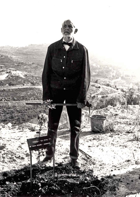 Armin Wegner Yad-Vashem’de, Soykırım kurbanı Yahudiler anısına bir ağaç dikiyor 1967