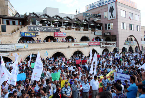 Ahmet Bahçıvan İş Merkezi önünde toplanan kalabalık adına basın açıklamasını okuyan BDP İl Başkanı Halit Yıldıztekin, Öcalan’ın ve gerillanın adım attığını ve artık hükümetin adım atması gerektiğini belirterek, şöyle konuştu;