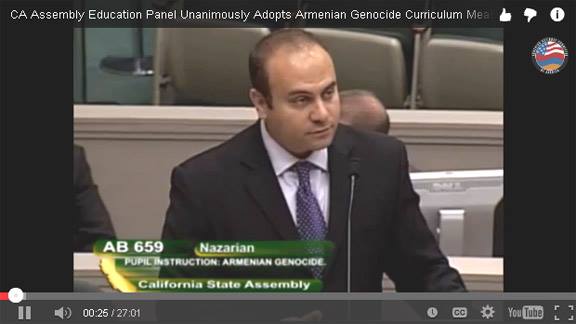 TurkishNY.com’a göre 29 Ocak tarihinde California Eyalet Meclisi, Meclis Üyesi Adrin Nazarian tarafından sunulan ve Ermeni soykırımının California eyaleti eğitim müfredatına dahil edilmesini öngören AB 659 isimli yasa tasarısını oy birliğiyle geçirdi. Armenian Weekly’nin haberine göre AB 659 artık, değerlendirme için Eyalet Senatosu’na gönderildi.