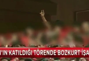 Başbakan Erdoğan katıldığı Fatih Projesi’nin tablet dağıtım töreninde, bozkurt işareti yapan bir öğrenci korumalara ecel terleri döktürdü. Fox TV kameramanı Mahmut Özgür’ün kendilerini çektiğini farkeden korumalar, önce öğrenciyi ablukaya aldı ardından da program bitine kadar başında bekledi. Fatih Portakal’ı keyiflendiren haberin adresi bu kez Ankara… Başbakan Erdoğan, Fatih Projesi kapsamında dağıtılacak tabletler için Ankara’da öğrencilerle buluştu. Erdoğan’ın salona girişinde ise en arka sıralardan bir öğrenci, programa katılan protokolü bozkurt selamıyla karşıladı.