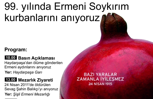 24 Nisan Ermeni Soykırımını Anma Platformu, 24 Nisan’da saat 10:00’da Haydarpaşa’dan ölüme gönderilen Ermeni aydınlarını anacak. Saat 13.00’te 24 Nisan 2011′de öldürülen Sevag Şahin Balıkçı mezarında anılacak. Saat 19.15’te Taksim Meydanı’nda anma düzenlenecek. Hafta içinde devam eden diğer etkinlikler ise şöyle:
