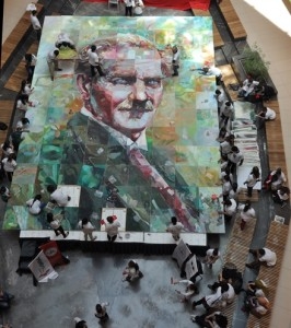 Bir alışveriş merkezinin giriş katında oluşturulan alanda 108 tuvalin birleştirilmesiyle oluşturulan Atatürk portresi 250 öğrencinin 2 günlük çalışmasıyla tamamlandı.