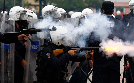1 Mayıs kutlamaları sonucu polis müdahalesinin devam ettiği Tarlabaşı’nda aralıklarla atılan gazların sonucu dumanlar yükseliyor. Ara sokaklarda Taksim’e girmeye çalışan eylemcilere yönelik devam eden müdahalede polis göz yaşartıcı gaz kullanıyor. Atılan gaz bombalarının dumanı ara sokaklarda yükseliyor. Çok sayıda polis ise caddede olası başka sızmalara müdahale için bekliyor.