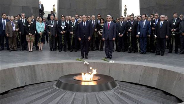 Fransa Cumhurbaşkanı François Hollande, Kafkasya turu çerçevesinde geldiği Ermenistan’ın başkenti Erivan’da soykırım anıtını ziyaret ettikten sonra Türkiye’ye seslenerek, Türkiye’den soykırımı tanımasını istedi. Hollande, “Soykırımı tanımak bölmez birleştirir” dedi.